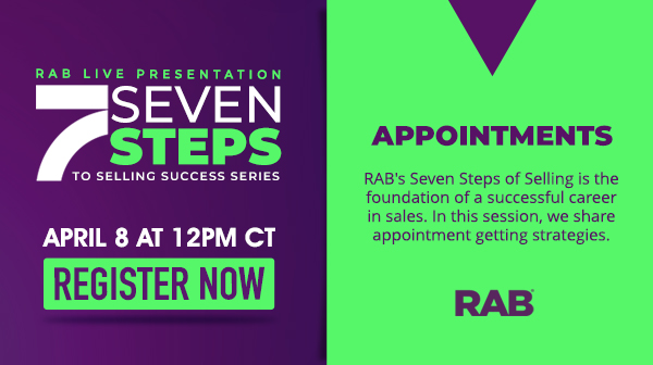 RAB's Seven Steps of Selling is the foundation of a successful career in sales. In this session, we share appointment getting strategies.