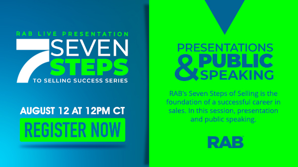 RAB's Seven Steps of Selling is the foundation of a successful career in sales. In this session, presentation and public speaking.